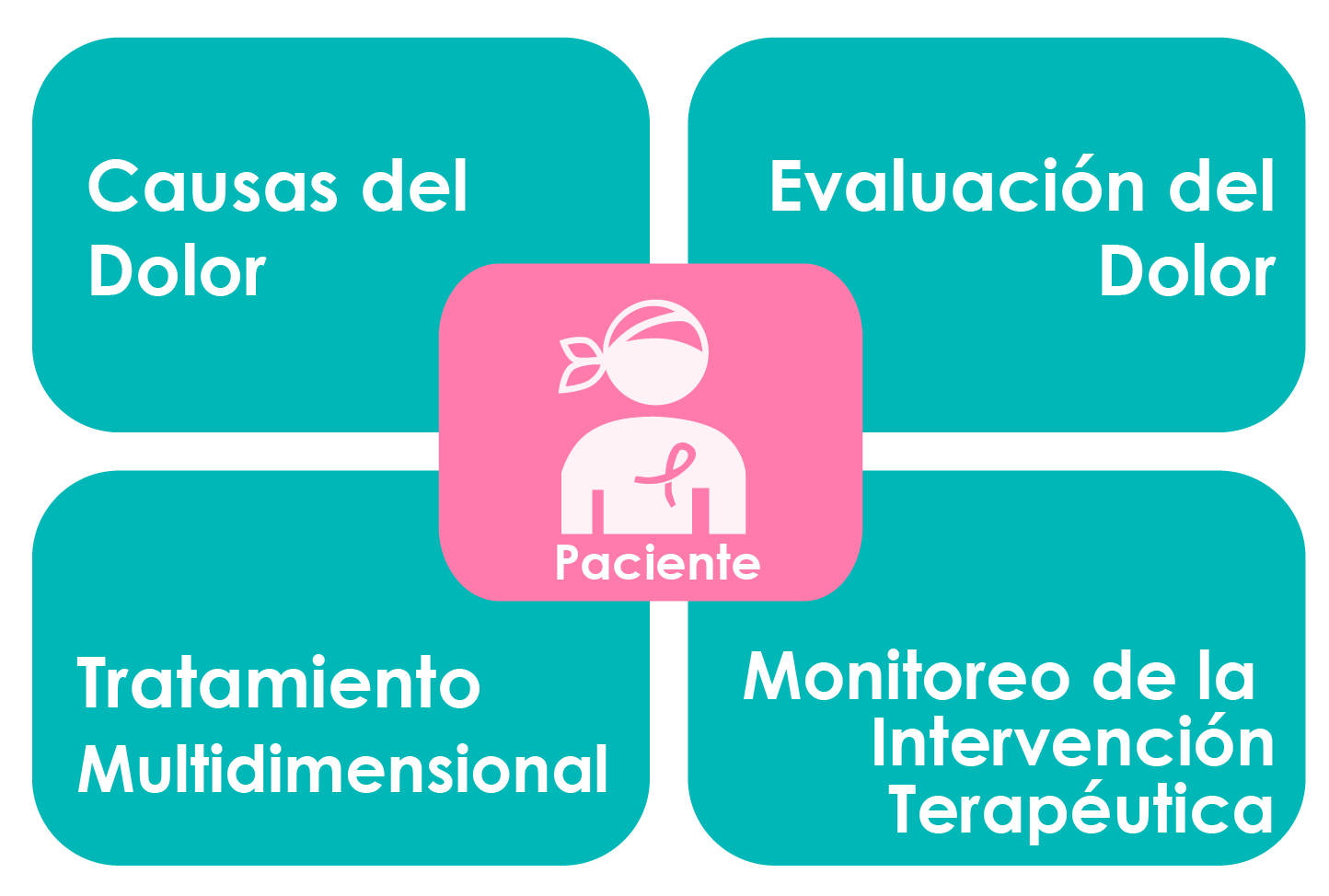 El dolor relacionado con el cáncer debe tratarse su causa y/o manejarse empleando estrategias diferentes a través de un enfoque multidimensional, con el uso simultáneo de terapias psicológicas y las terapias somáticas, ya que las variables psicológicas tienen un profundo impacto emocional y social en la percepción del dolor y a su vez la terapéutica farmacológica tiene un efecto en el bienestar la paciente.